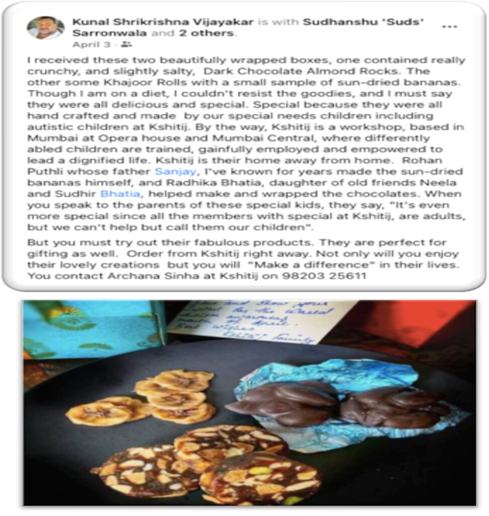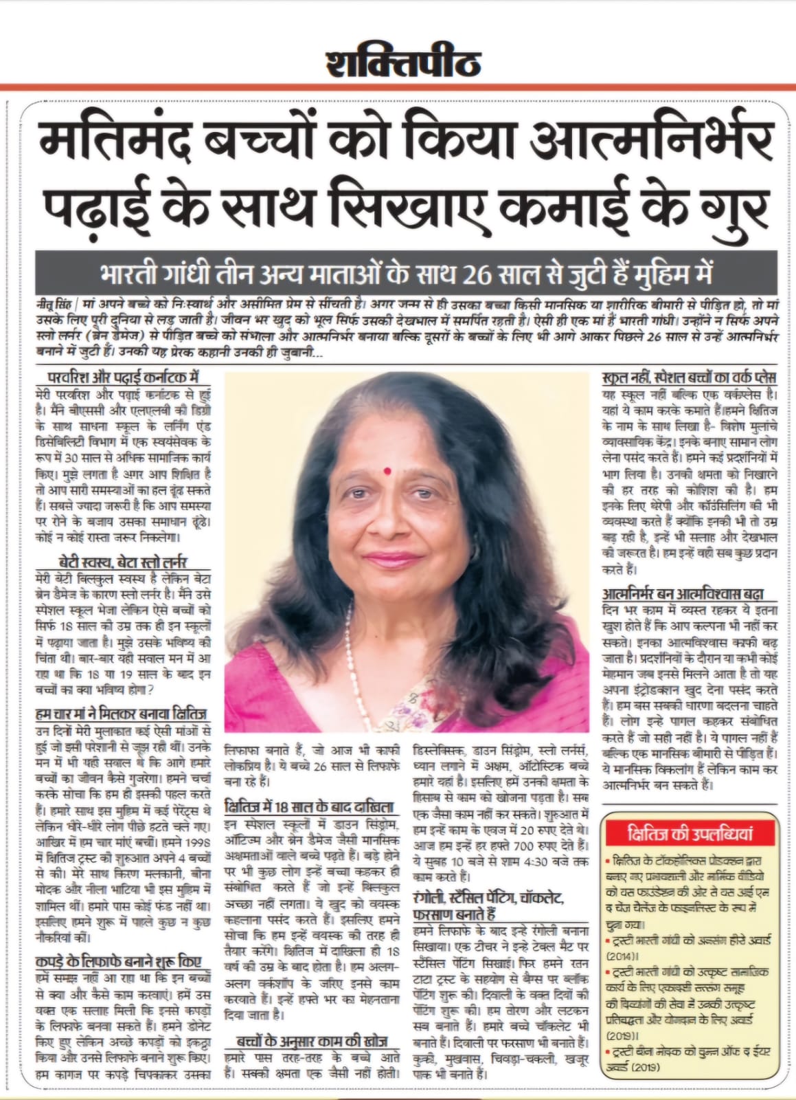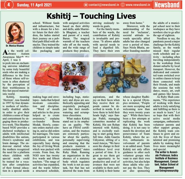 “Kshitij features in the book I am Possible, a book based on inspirational stories showcasing grit and determination of people and organisations that have fought odds to carve a niche for themselves. The brief story on the journey of Kshitij and its accomplishments, written by Ms. Bindu Sanganee (sibling of Hiral Dhruv), features in this book. It is available on Amazon.com. The proceeds from the sale were also donated to Kshitij.